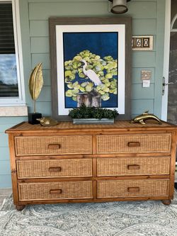 Vintage Coastal BOHO Woven Rattan Solid Wood 6 Drawer Dresser $275Merritt Island, FL