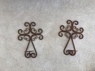 Pair of copper brown wrought iron candle holders$8Villa Park, CA