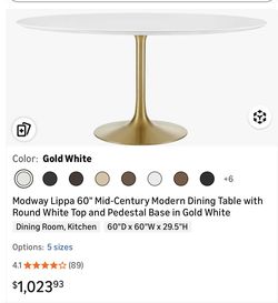 Modway Lippa 60" Mid-Century Modern Dining Table With Round Top$550Phoenix, AZ