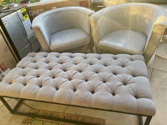 Two gray upholstered, living room, chairs, and one ottoman. Living room chairs have slip covers that can be removed washed and or died. they’re in goo$300Phoenix, AZ