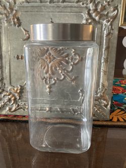 Tall Clear Glass Jar With Silver Lid$5El Cajon, CA