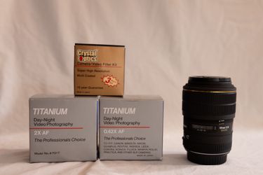 Sigma 105mm 1:2.8 EX + Crystal Optics Photo/Video 3-Filter Kit + Titanium 2x AF and .42x AF$300Portland, OR