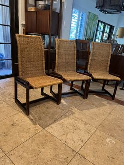 Trio of Mid Century Rattan and Walnut Chairs$99Pembroke Pines, FL