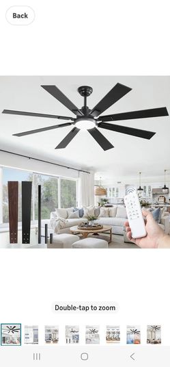 ZMISHIBO 62 inch Large Ceiling Fans with Lights and Remote, Indoor/Outdoor Black Modern Ceiling Fan for Kitchen Living Room Patio, 6 Speed Reversible $85Camden, NJ