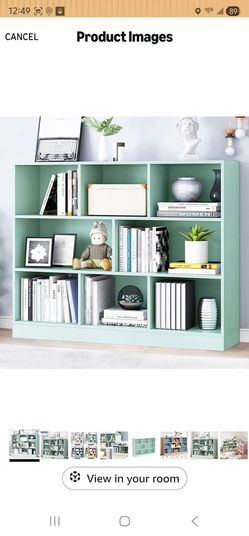 IOTXY Open Shelf Low Bookcase - Wooden 3-Tier Floor Standing Display Cabinet Organizer with Base, 10 Cubes Short Horizontal Bookshelf in Tiffany-Green$75Camden, NJ