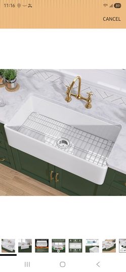 TUKTUK White Farmhouse Sink 33 inch Fireclay Apron Front Farm House Kitchen Sink Single Bowl Deep Drop In Undermount Reversible Heavy Duty Easy to Cle$160Camden, NJ