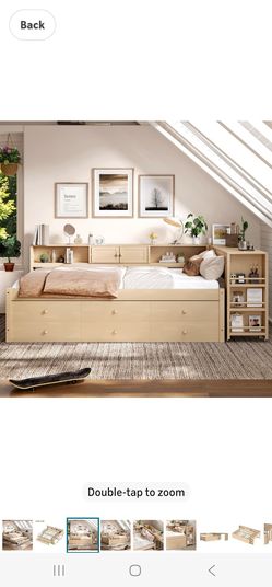 Bellemave Twin Corner Bed Frame with Desk and Storage Shelves, Captain beds with Bookcase and Trundle and 3 Drawers, Wood Twin Size Daybed, Golden$300Camden, NJ