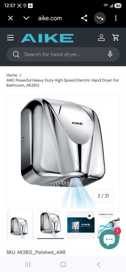 AIKE Elephant Power Commercial Hand Dryer High Speed Auto Warm Wind, Polished Stainless Steel Cover AC110V-130V Model AK2812$80Camden, NJ