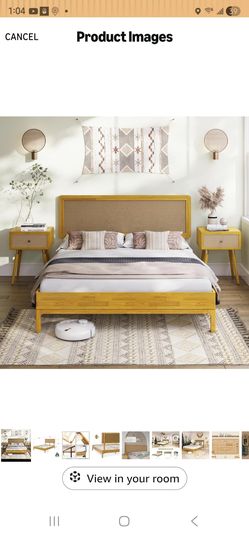 Bme Nipe Bed Frame with Headboard, Bohemian and Mid-Century Modern Style, Solid Rubber Wood Platform Bed with Slat Support, No Box Spring Needed, Easy$290Camden, NJ