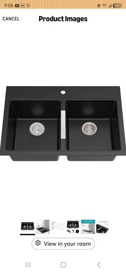 KRAUS Quarza 33-inch Drop-In/Undermount 50/50 Double Bowl Granite Kitchen Sink in Black Onyx, KGD-433B$130Camden, NJ