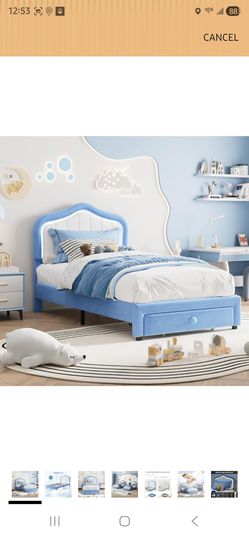 GarveeHome Upholstered Full Size Bed Frame with Led Lights and Storage Drawer, Cute Velvet Led Bed Frame with Headboard for Kids, Girls, Boys, No Box $100Camden, NJ