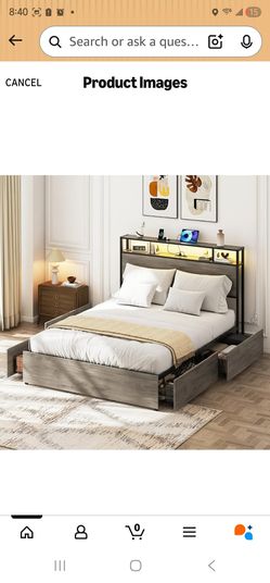 Tatub LED Queen Bed Frame with 4 Storage Drawers & Charging Station, Platform Metal Bed Frame with Headboard, Noise-Free, No Box Spring Needed, Ancien$150Camden, NJ