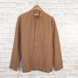OUTLIER NYC Men's Injected Linen Popover Shirt in Brown japanese fabric Size L$148Bell Gardens, CA