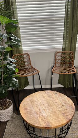 Bamboo Bar Chairs .. Coffee Table .. Plant And Curtains $400Tampa, FL