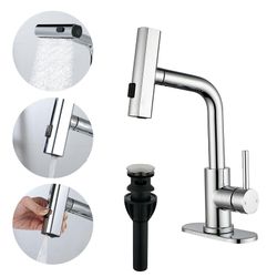 TRIPHIL Waterfall Bathroom Faucets with 3 Mode Pull Down Sprayer,Single Handle Modern Bath Sink Faucet with Pop Up Drain and Deck Plate,1 Hole RV, Bar$40Phoenix, AZ