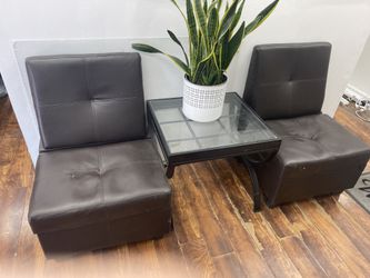 2 Brown Chairs with storage and glass table$100New Rochelle, NY