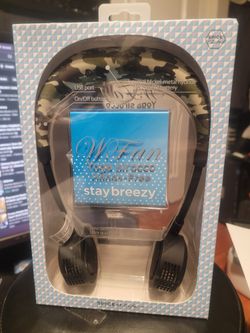 Stay Breezy" hands-free portable neck fans in a camouflage design. $40City Of Industry, CA