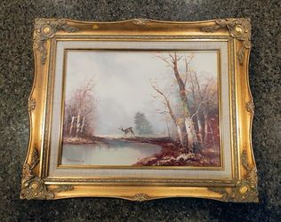 GORMAN Original Oil Painting on Canvas Deer by the Lake$240Lake Barrington, IL