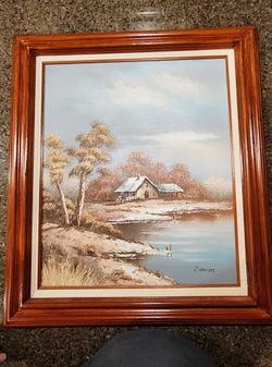 Vintage American Landscape Oil Painting by Deacon$425Lake Barrington, IL
