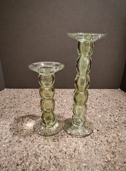 Vintage Set of 2 Avocado Green Heavy Bubble Glass Pillar Candlestick Holders Mid Century$60Lake Barrington, IL