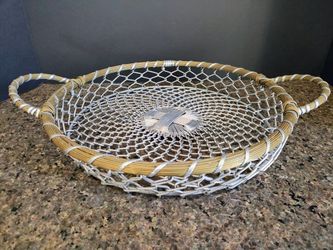Metal Art Aluminum & Brass Basket Large 13" Woven weaved Bowl Wrapped Handles - Vintage $40Lake Barrington, IL