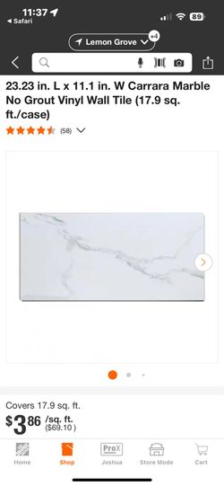 Carrara Marble Vinyl Stick On Wall Tile $50San Diego, CA
