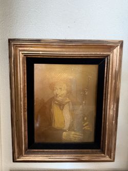 Rare “The Bagpiper" by Sir David Wilkie print, originally painted in 1813. Vintage gold Foil holographic metallic mixed media portrait Mexican man ba$140San Diego, CA