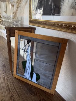 Vintage Handmade gorgeous blue beige and green stained glass woman portrait art$400San Diego, CA