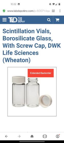 Wheaton Liquid Scintillation Vials$150Temple City, CA