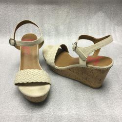 Jellypop Linen Cork Wedge High Heel Strap Sandals with Silver Buckles Size 10$20Carlisle Brks, PA