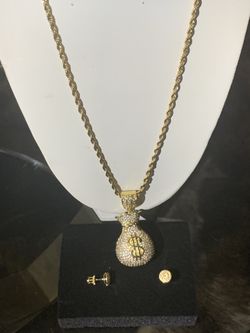 Beautiful 18in rope chain with moneybag pendant +free earrings$100Garland, TX