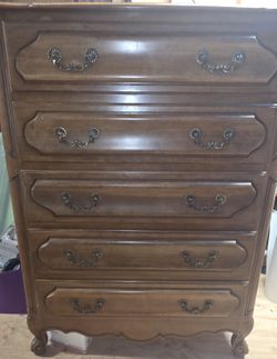 Vintage Dresser Klings 38" Across Top 50" Tall Brown Solid Wood 5 Drawers Heavy$250Roy, WA