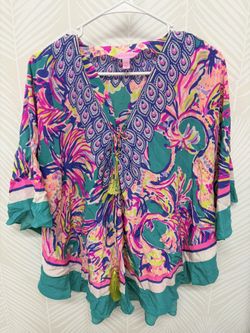 Lilly Pulitzer Lettie 100% silk caftan top in the Agate Green Safari Sighted print L/XL$60Palm City, FL