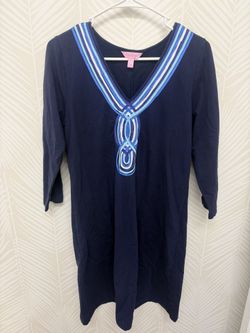 Lilly Pulitzer Clarkson French Terry dress True Navy Geometric Neckline Size L$40Palm City, FL