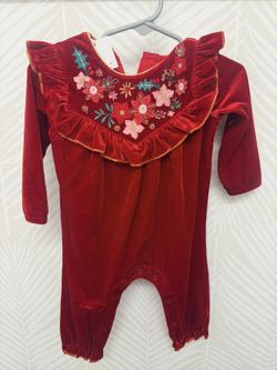 NEW NWT Mud Pie Baby Velvet Embroidered Poinsettia 3/6m Holiday Christmas $10Palm City, FL