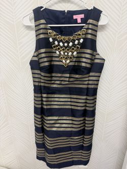 Lilly Pulitzer Embellished Jewled Fitted Navy Gold Silver Stripe Cocktail Dress Size 8$50Palm City, FL