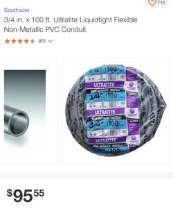 3/4 in. x 100 ft. Ultratite Liquidtight Flexible Non-Metallic PVC Conduit$60Stockton, CA