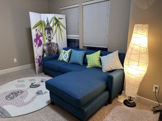 Like new Reversible Chaise sectional sofa in peacock blue Color + pillows$700Beaverton, OR