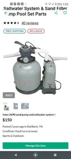 Intex 2690 sand pump and saltwater system !$100Red Bank, TN