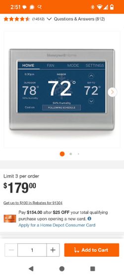 Wi-Fi Smart Color 7-Day Programmable Smart Thermostat with Color-Changing Touchscreen Display$150Los Angeles, CA