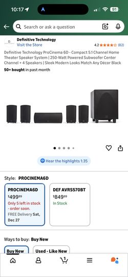 Used Definitive Technology Proxies 600 Surround Sound System $300Scottsdale, AZ