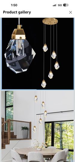 Dimmable Brass Gold Crystal Pendant Light - Modern 5-Light Diamond Chandelier for Kitchen Island, Dining Room, Hallway, and Bathroom$80La Habra Heights, CA