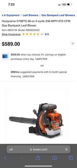 570 Bts Back Pack Blower Husqvarna $410Oaklandon, IN