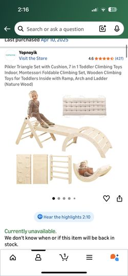 Pikler Triangle Set with Cushion, 7 in 1 Toddler Climbing Toys Indoor, Montessori Foldable Climbing Set, Wooden Climbing Toys for Toddlers Inside with$80San Diego, CA