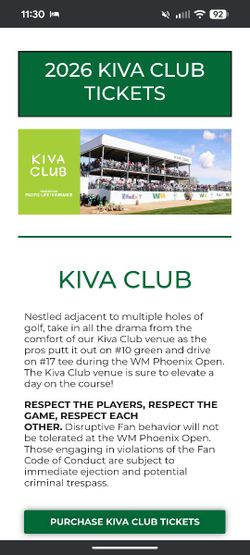 Two Tickets 2026 WM Phoenix Open GA Kiva Club$975Renton, WA