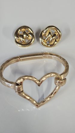 hammered gold-tone open heart hinged bangle. and beautiful earrings$25Brooklyn, NY