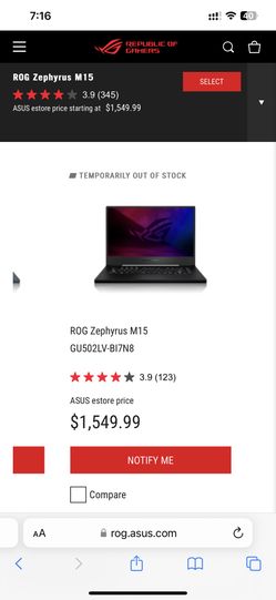 ROG Zephyrus M15 GU502LV-BI7N8$800Scottsdale, AZ