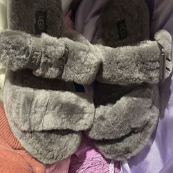 Ugg Fluffy Slippers Gray Open Toe Used Twice Size 7$25Bell Gardens, CA