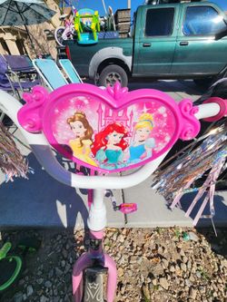 Disney Princess Bike With Training Wheels, Helmets And Extra Back Seat For Dolls. $30$30Las Vegas, NV
