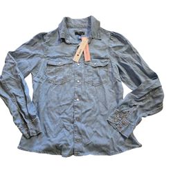 Aqua Chambray Western Denim Long Sleeve Shirt SZ XXS NWT$50Houston, TX